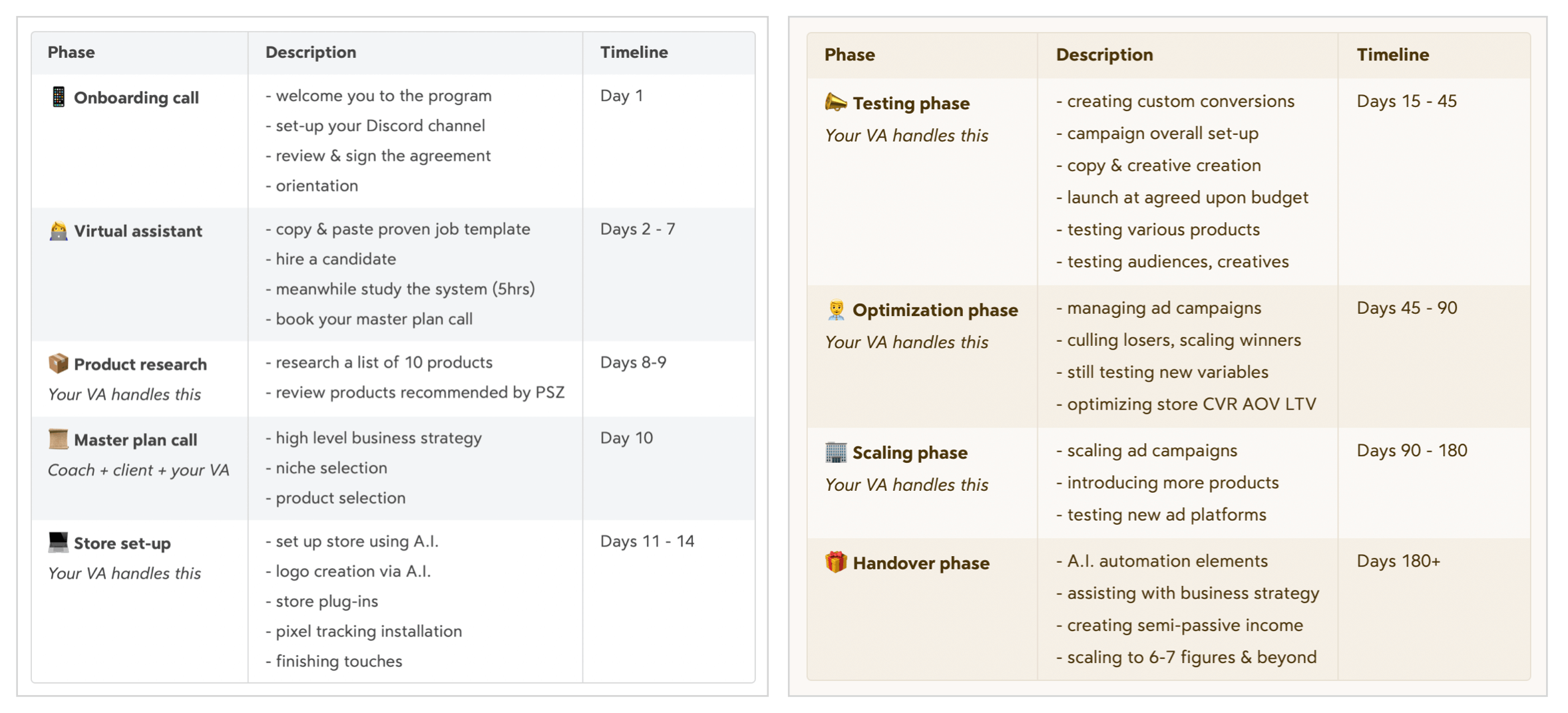 This not a regular coaching program. Firstly, most programs offer group coaching which is inefficient, calls are overloaded, people can barely get to their questions having to wait for 20-100 other people to ask theirs. We provide 1:1 mentorship with a dedicated coach. Plus, you're getting access to our internal team's training & SOPs that they've used to generate tens of millions for our clients profitably, so these are battle tested & proven strategies in the real world rather than just theory. If you model something that's been proven to work across 100's of stores, your chances of success go up significantly.